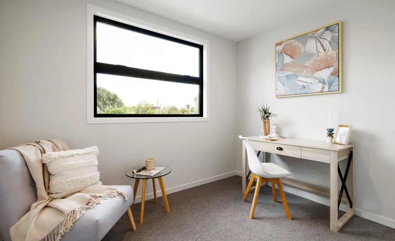 The master suite is complete with a tiled ensuite and an large walk-in wardrobe. Three additional bedrooms provide plenty of space for family or guests, and there’s a fifth room that works beautifully as a home office.