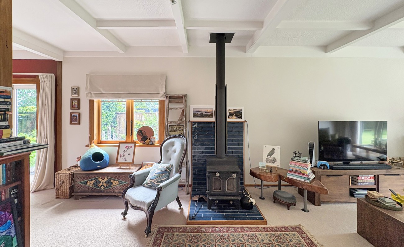 Three spacious bedrooms, each bathed in natural light. The heart of the home is the open-plan dining and lounge area, where a cosy log burner creates that perfect spot to curl up on cooler evenings.