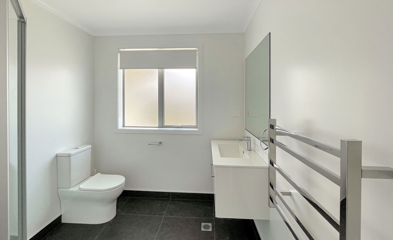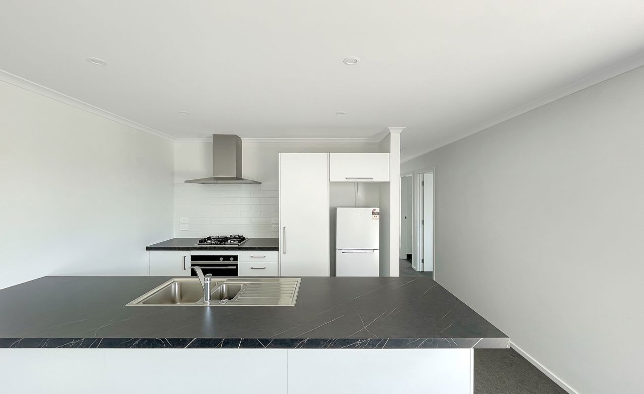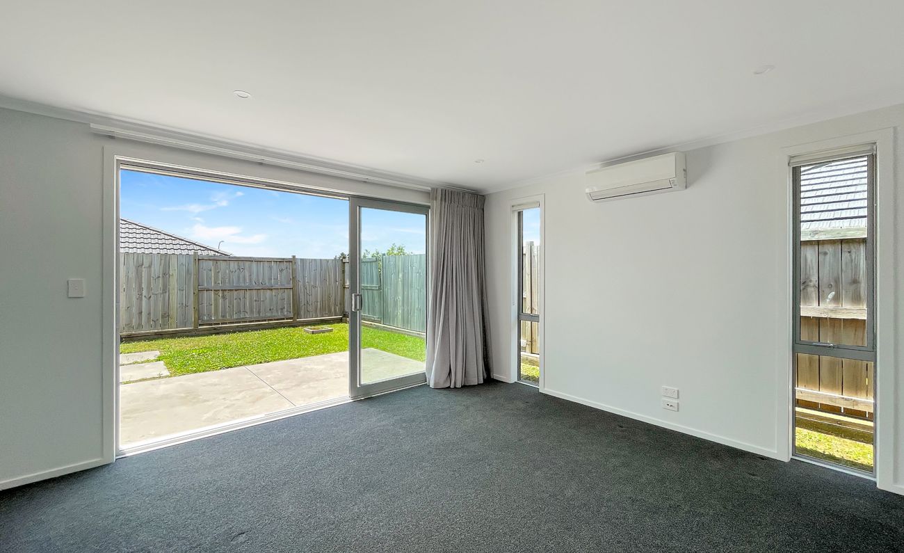 The open-plan living area is the heart of the home, combining the lounge with a well-appointed kitchen. The kitchen features ample bench space, modern appliances, and a breakfast bar, making everyday living easy. The living area opens directly onto the patio and a fully fenced, private section.