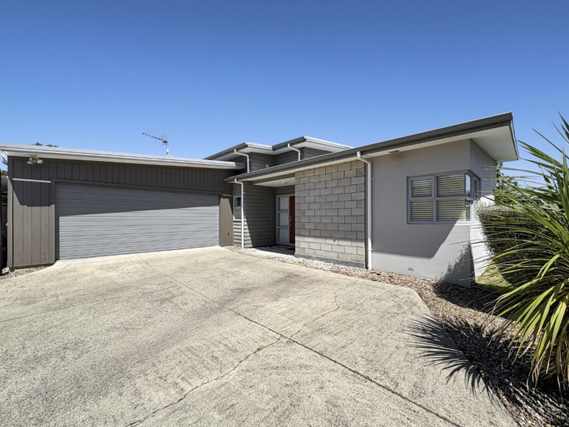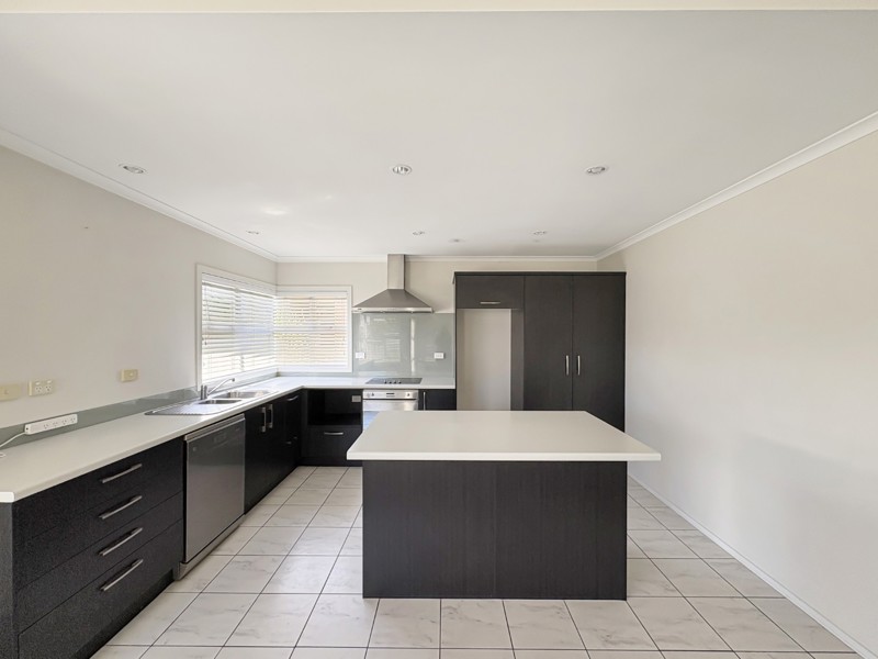 Three bedrooms, with the master bedroom boasting a deluxe ensuite complete with an oversized, fully tiled shower and bath. The heart of the home is a modern kitchen, designed for and functionality. It features a spacious central island with breakfast bar, abundant storage, and generous bench space.