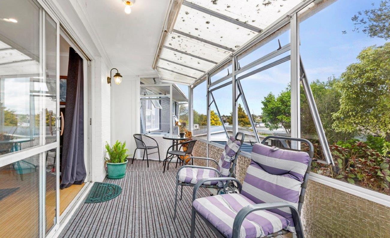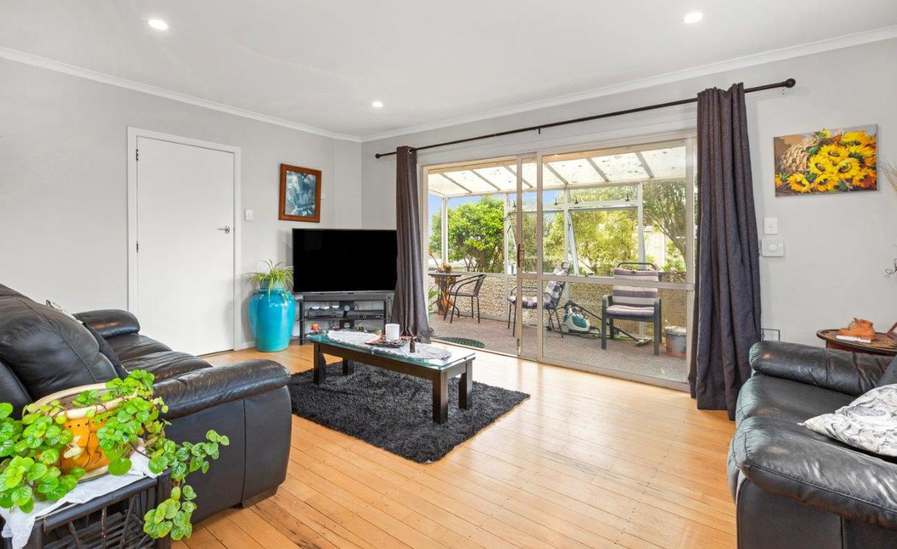 The home features three bedrooms and a functional kitchen with a walk-in pantry, flowing into an open-plan living area that opens onto a sunny conservatory, capturing natural light.