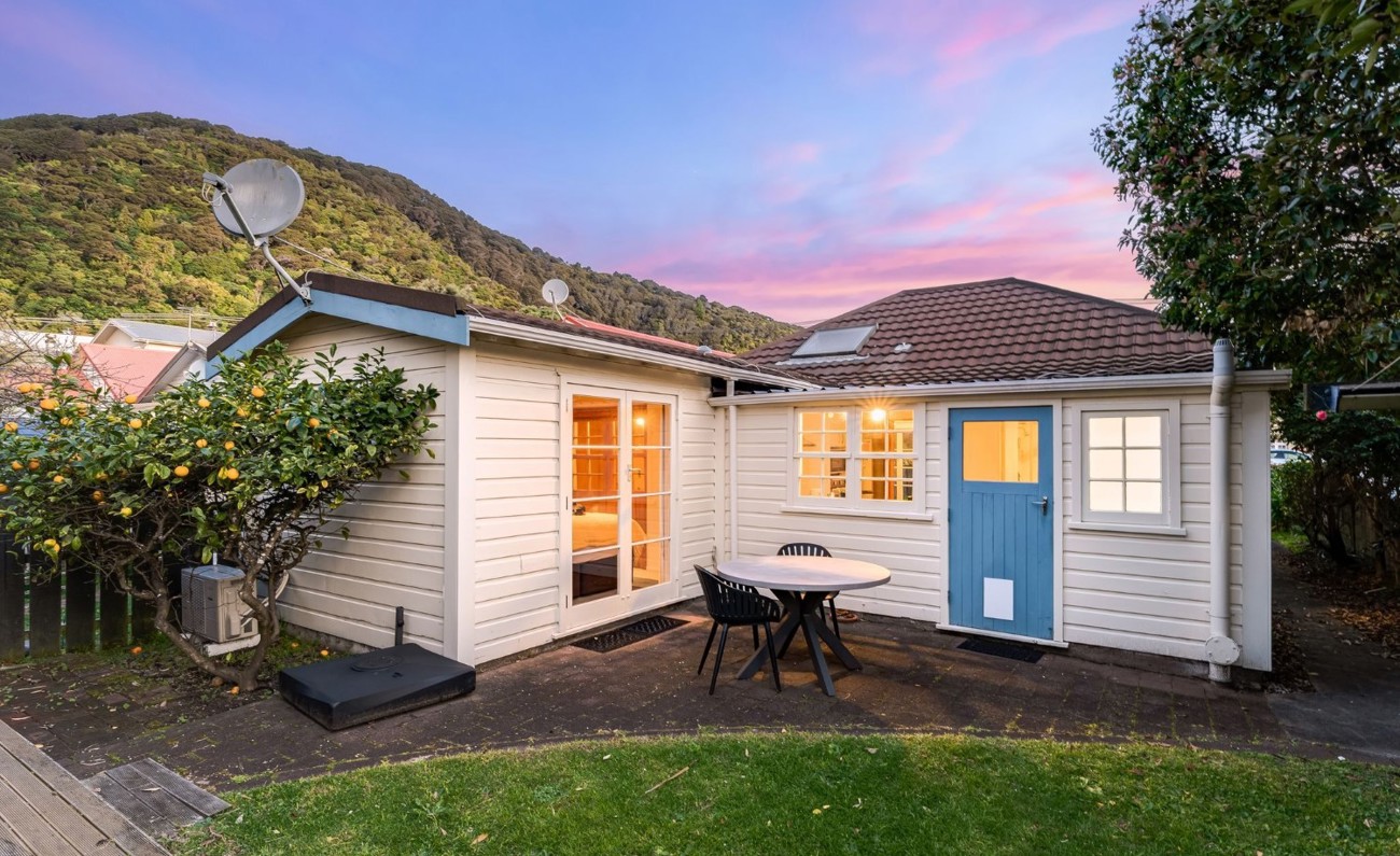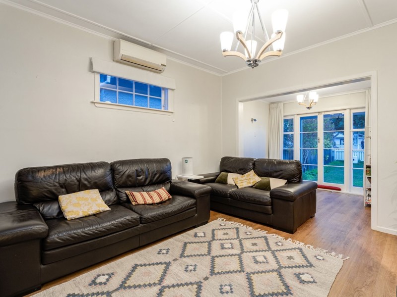- Light-filled spacious lounge with skylight, heat pump and French doors opening to the front garden