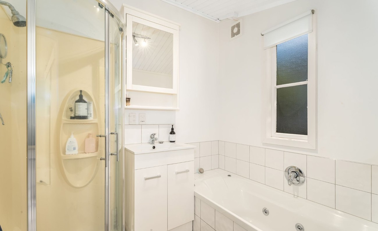 - Three bedrooms, all with built-in wardrobes; master opens to the garden via French doors