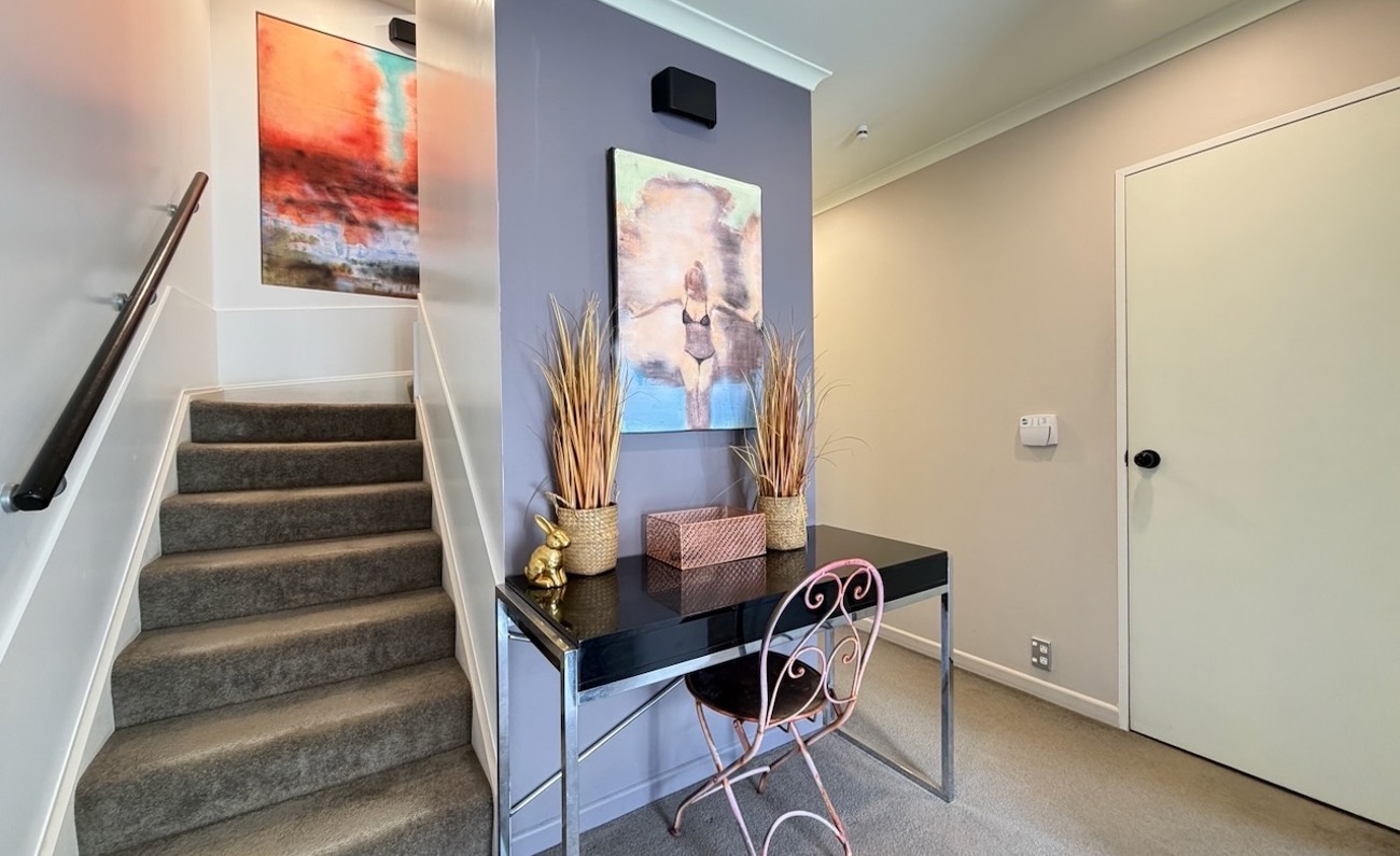 Inside, you’ll find five bedrooms and three full bathrooms, including a luxurious master ensuite with a spa bath and twin shower. All bedrooms feature wardrobes, and three open onto private balconies. There are two living areas, with the upstairs lounge currently converted into the 5th bedroom.