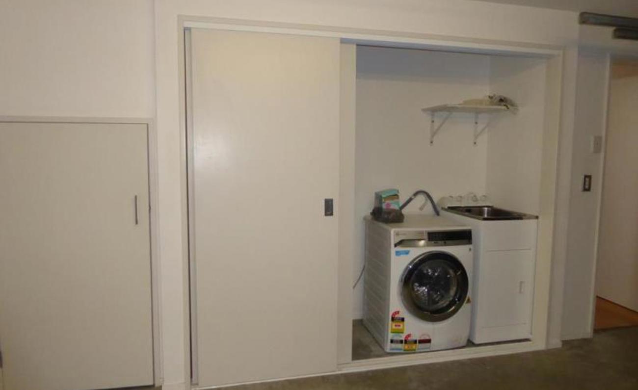 The laundry alcove is in the garage, there is a storage cupboard under the stairs and the garage is a large double with auto door and internal access to the property, plus x 2 off street parks