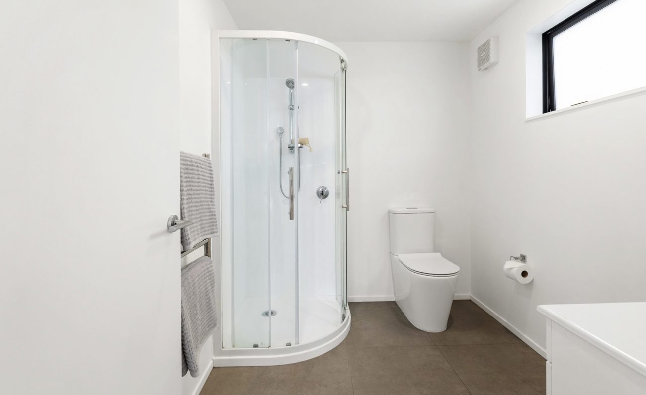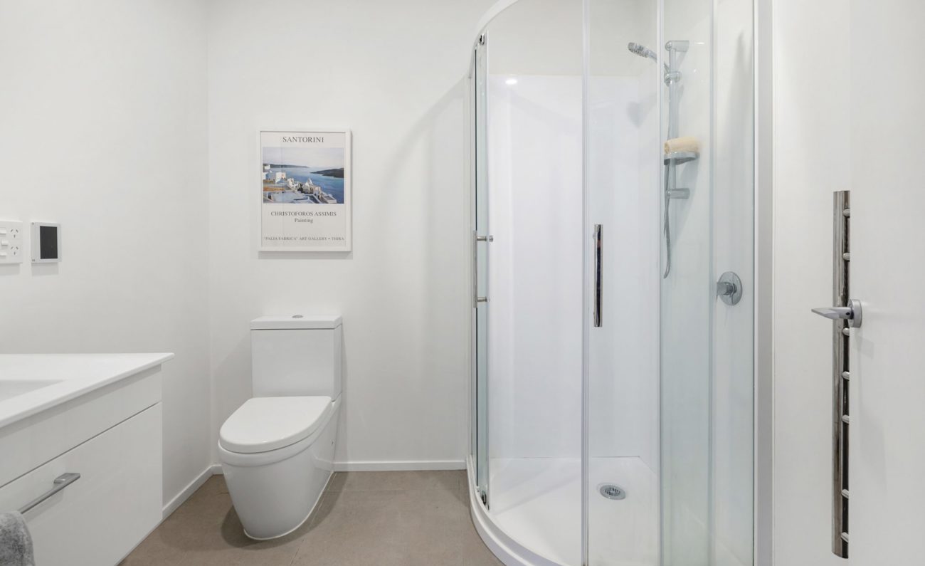 There are two bathrooms, including an ensuite, both finished with tiled floors and heated towel rails.