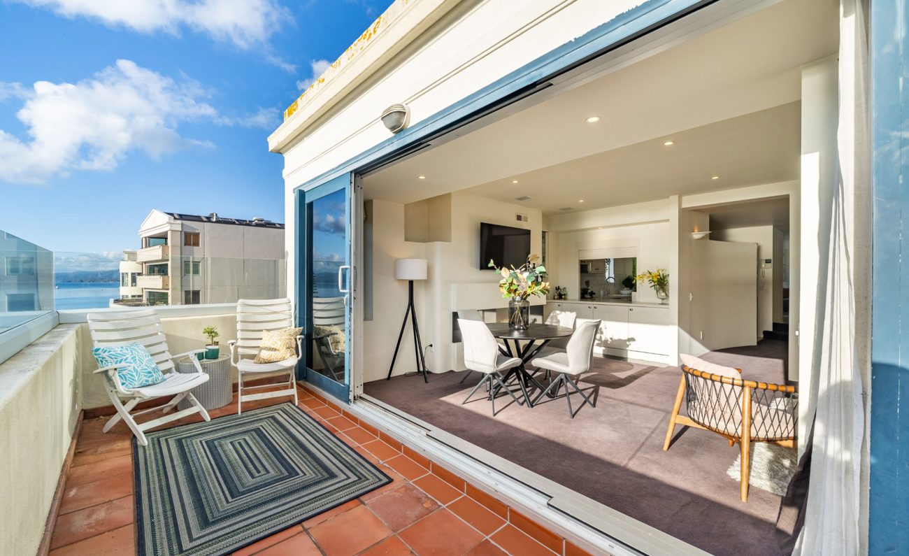 This elegent two-level penthouse apartment in the heart of Oriental Bay offers a rare opportunity to live in one of Wellington’s most sought-after locations.