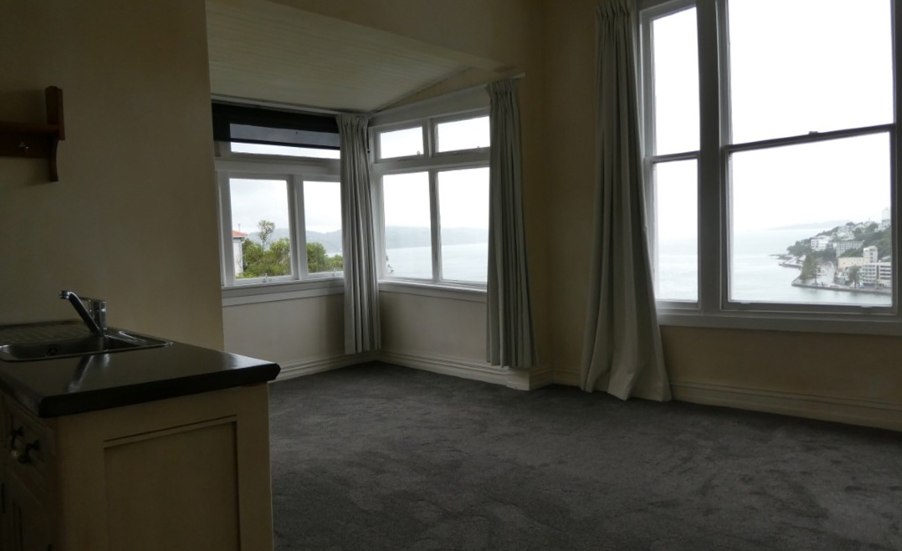 2 bedroom, 1 bathroom. Beach proximity and stunning harbour views are the cherry on top at this lovely upstairs apartment now available in Oriental Bay. Right outside is a bus stop for #20 bus as well as pedestrian access to Oriental Parade.