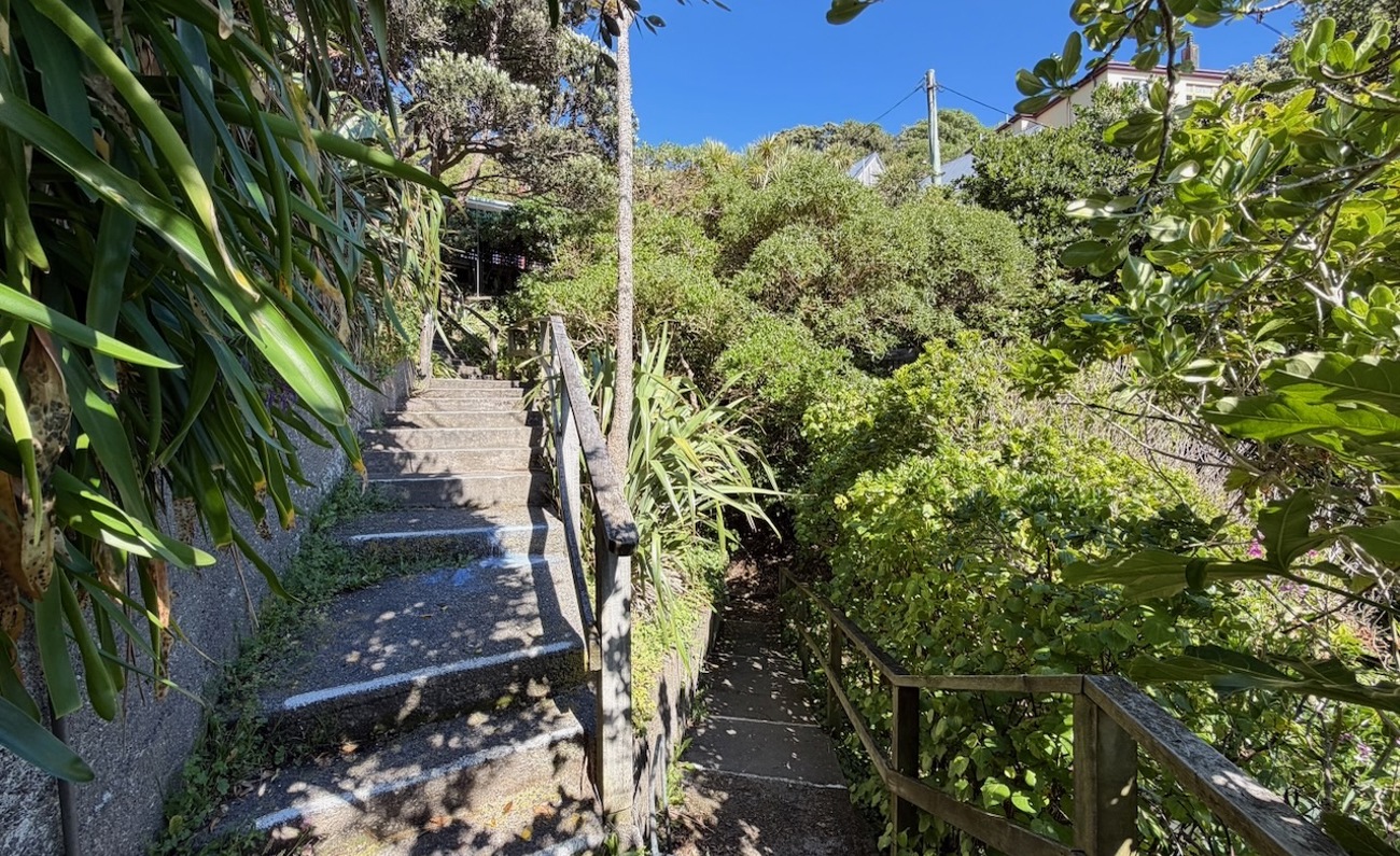 Access to the house involves a substantial walk up, but the elevated position provides quiet surroundings and amazing views.