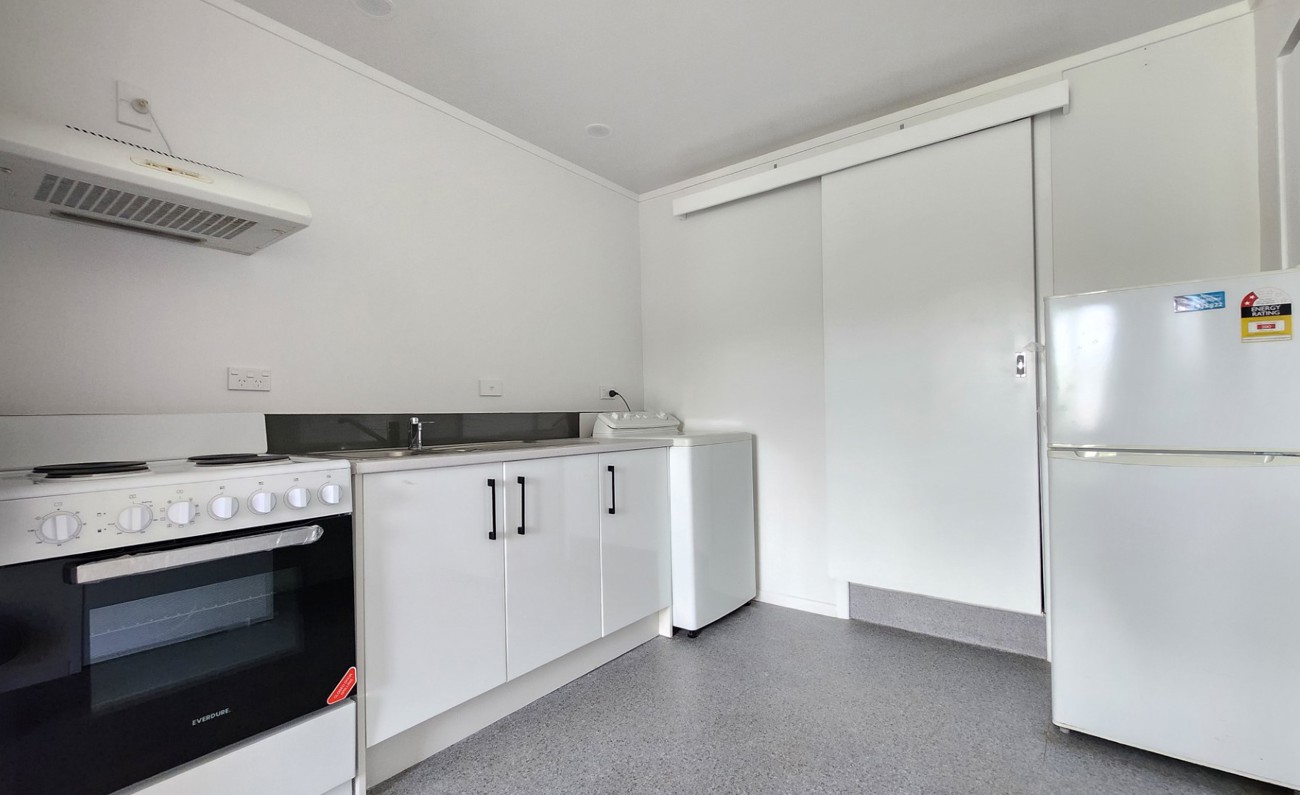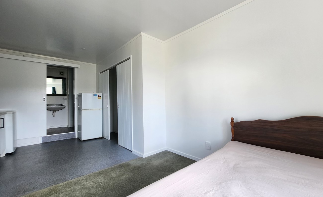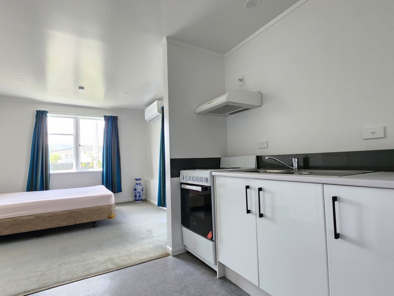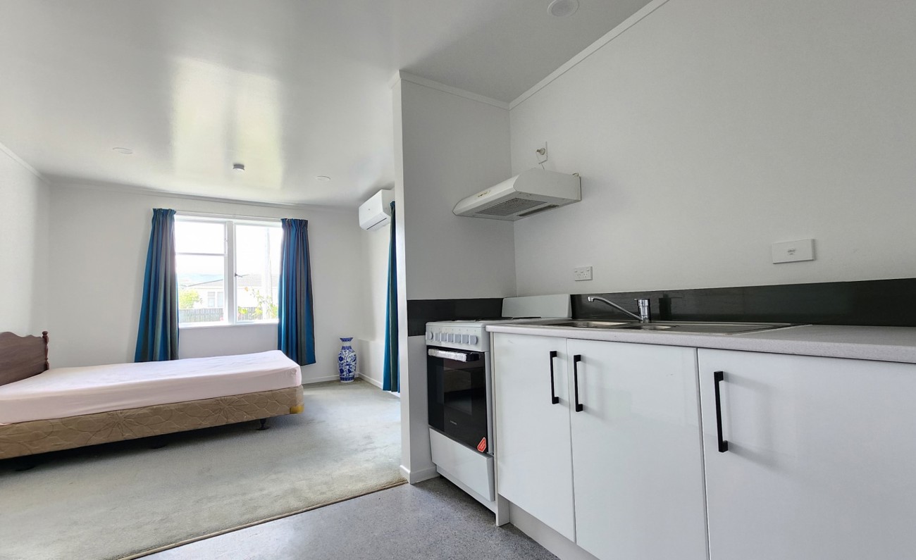 Positioned over one level, this home is a studio apartment with open plan,bedroom, living and kitchen, Fridge/freezer, Washing machine, 1 bathroom and 1 off street carpark.