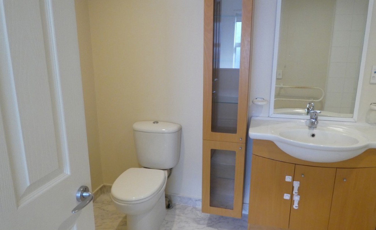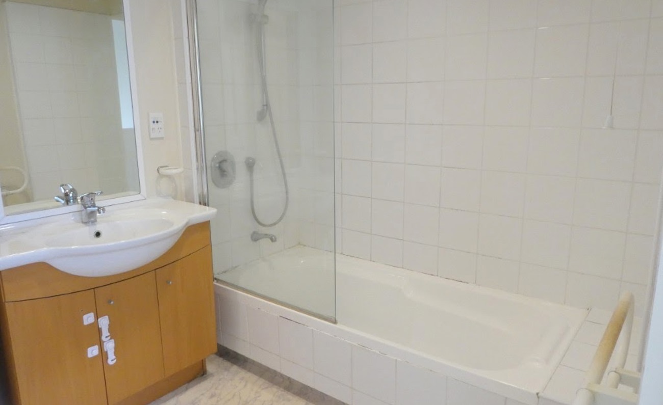 Good size bathroom with a shower over bath, vanity, toilet, heater, heated towel rail and expelair.
