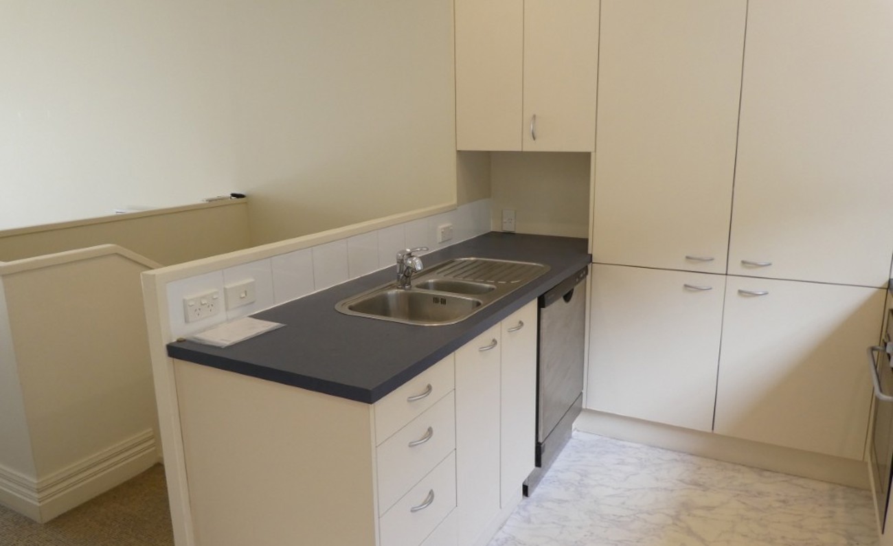 Modern galley-style kitchen which overlooks and has access to a little courtyard. All whiteware provided.