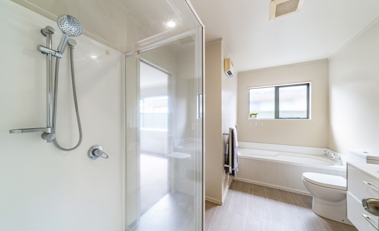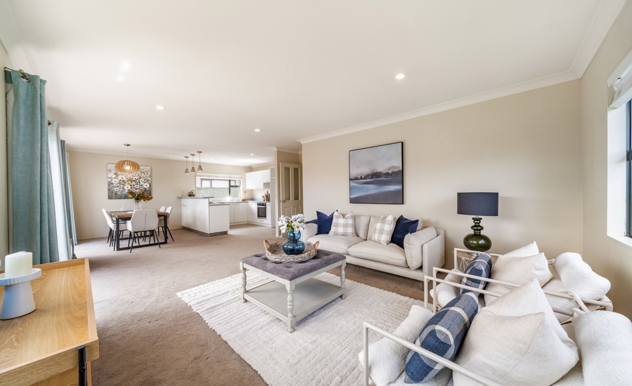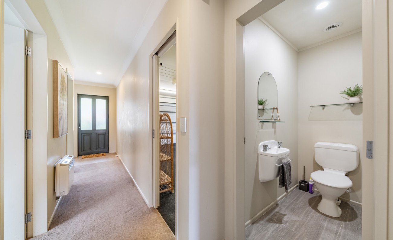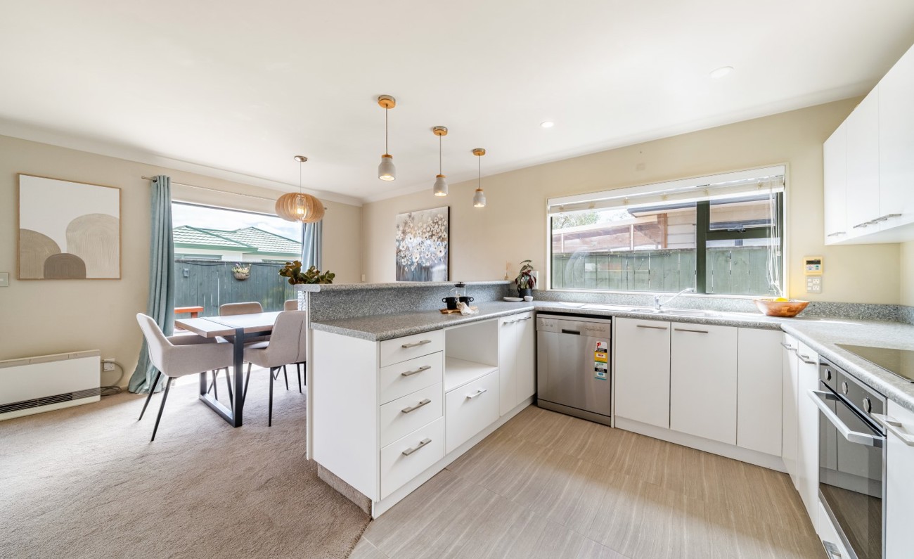The open-plan lounge and dining area is bright and welcoming, with easy access to a private deck that’s great for outdoor living. The kitchen is tidy and functional with good storage and bench space.