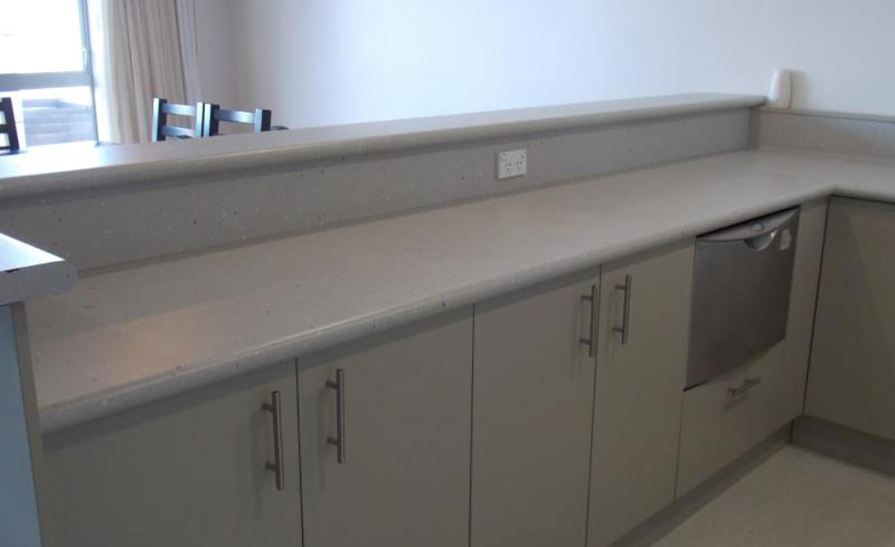 Modern spacious kitchen which open plan to living an dining room. Balcony with great city views.