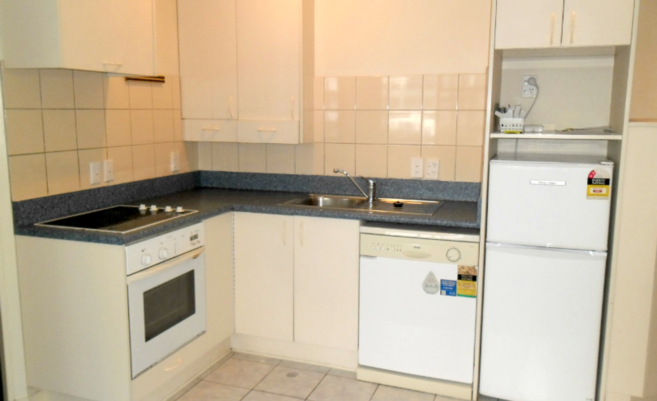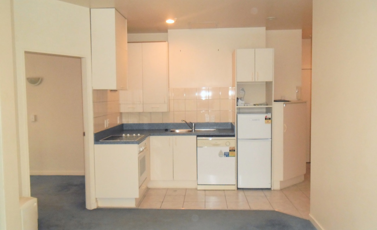 The apartment features a light-filled open-plan living and dining area, complete with a wall heater to ensure year-round comfort. Adjoining the living space is a functional L-shaped kitchen, thoughtfully designed and fully equipped with all whiteware for added convenience.