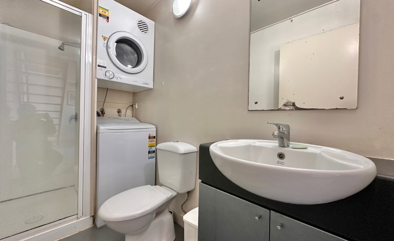 There is a separate bathroom/laundry equipped with a shower, vanity toilet and a washing machine and a dryer.