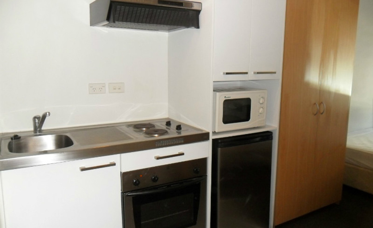 The galley style kitchen comes with good cooking facilities including full under bench oven, hob, and rangehood.