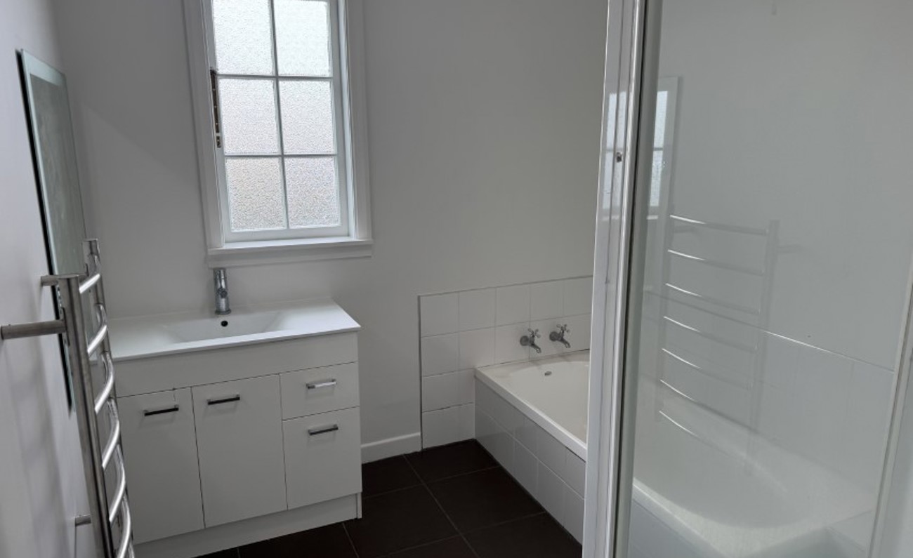 The family bathroom includes both a separate shower cubicle and bath, plus the added convenience of a separate toilet and separate laundry.